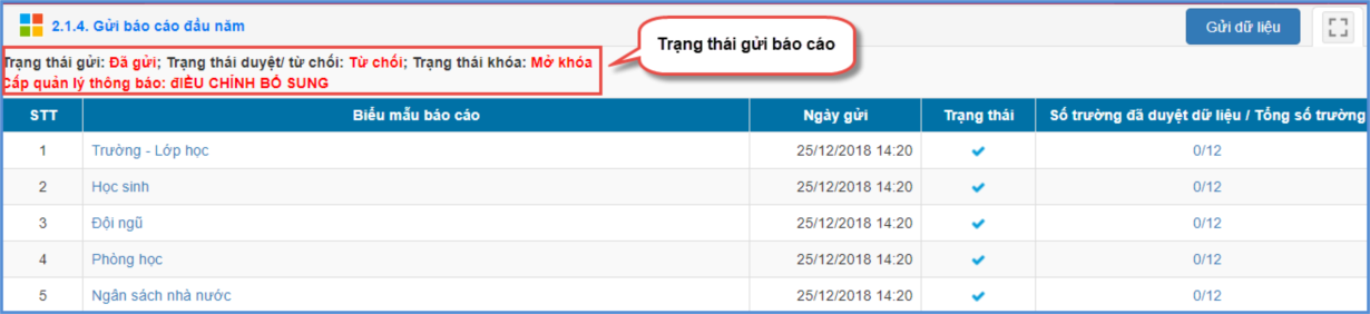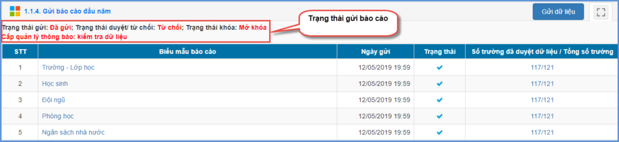 - Hoàn thành quá trình gửi dữ liệu tại Sở GDĐT, Bộ GDĐT thực hiện kiểm tra dữ liệu và các báo cáo Sở gửi.