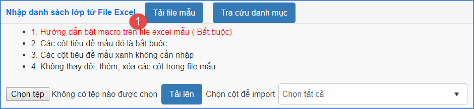 Truy cập vào mục 2.2 Nhập lớp học từ excel.