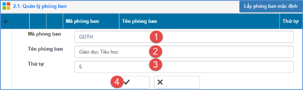 Mô tả: Hỗ trợ Phòng GD&ĐT khai báo và quản lý các phòng ban thuộc Phòng.