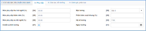 - Mức phụ cấp thu hút nghề (%): Nhập % phụ cấp thu hút của cán bộ