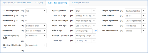 - Kết quả bồi dưỡng thường xuyên: Chọn kết quả bồi dưỡng cao nhất trong danh sách hiển thị