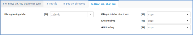 - Đánh giá công chức: Chọn kết quả đánh giá công chức (nếu có)