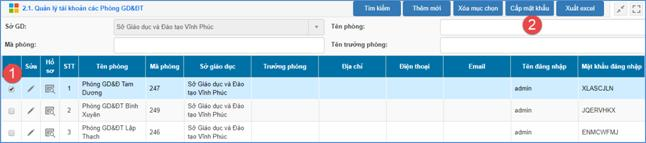 Mô tả: Hỗ trợ cán bộ Sở GD&ĐT cấp mật khẩu cho Phòng GD&ĐT