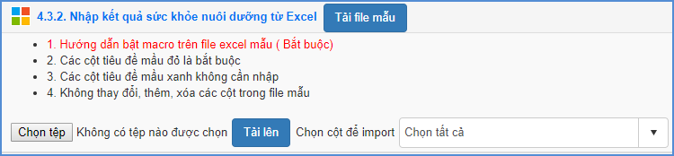 4.3.2 Nhập kết quả sức khỏe nuôi dưỡng từ Excel