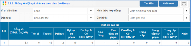 Mô tả: Chức năng này hỗ trợ nhà trường thống kê đội ngũ nhân sự theo trình độ đào tạo.
