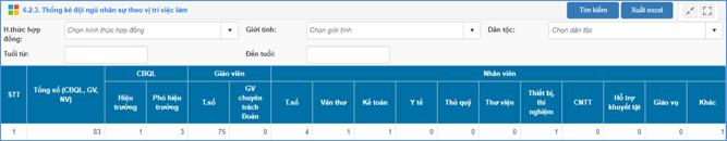 Mô tả: Chức năng này hỗ trợ nhà trường thống kê đội ngũ nhân sự theo vị trí việc làm.