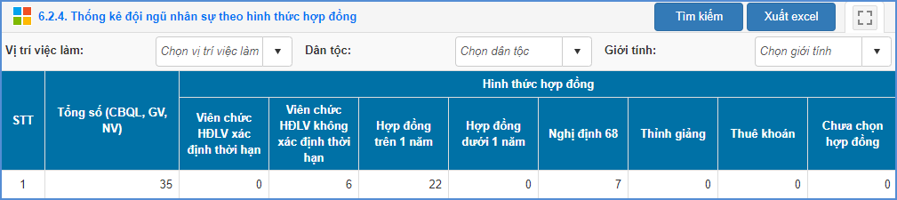 6.2.4 Thống kê đội ngũ nhân sự theo hình thức hợp đồng