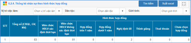 Mô tả: Chức năng này hỗ trợ nhà trường thống kê đội ngũ nhân sự theo hình thức hợp đồng.
